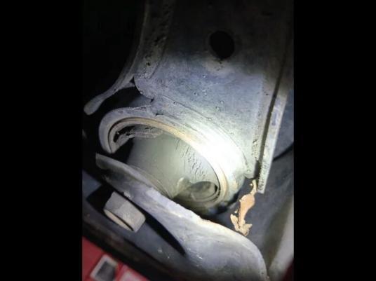 (Примери типичних површинских пукотина на чаурама командне руке Хигхландер-а - обратите пажњу на фине, плитке линије без дубоких поцепа.)