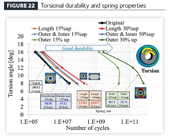 Закључци истраживања: Када се повећа само спољни пречник, смањује се издржљивост на радијална оптерећења, торзијска издржљивост се побољшава, а перформансе опруге омекшавају. Када се повећају и унутрашњи и спољашњи пречник, побољшава се издржљивост под радијалним и торзионим оптерећењима, док перформансе опруге омекшавају. Када се аксијална дужина повећа, издржљивост под радијалним и торзионим оптерећењима се побољшава, а перформансе опруге се учвршћују.