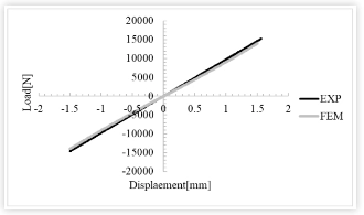 Крива крутости чауре (крива сила-померај) је упоређена са експерименталним резултатима, чиме се додатно доказује валидност успостављеног ФЕМ модела. Као што се може видети са слике: анализа коришћењем хипереластичних параметара идентификованих из узорака материјала за испитивање показује добру конзистентност између експерименталних и аналитичких резултата на дијаграму оптерећења и померања.