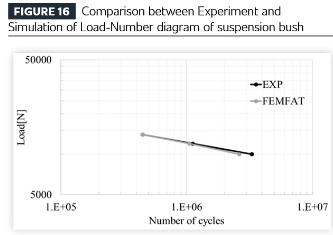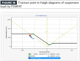Затим се резултати горње структурне анализе преносе у софтверски модул за анализу замора (у овом случају коришћењем софтвера ФЕМФАТ компаније Магна ЕЦС) и пореде се са резултатима теста издржљивости. Тест и анализа показују одличну конзистентност иу веку на замор иу локацији пукотине.
