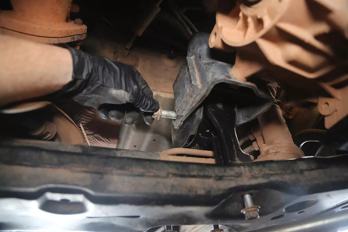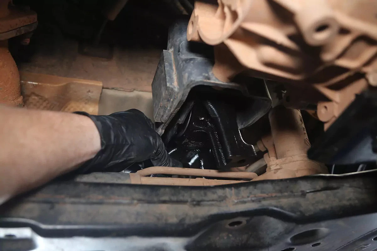 На нашем ФВД демо возилу, носач мењача се налази иза мењача на предњем подраму. Ако имате АВД, 4ВД или РВД возило, носач је вероватно на самом задњем делу мењача, центриран скоро директно испод аутомобила, између мењача и попречног носача.