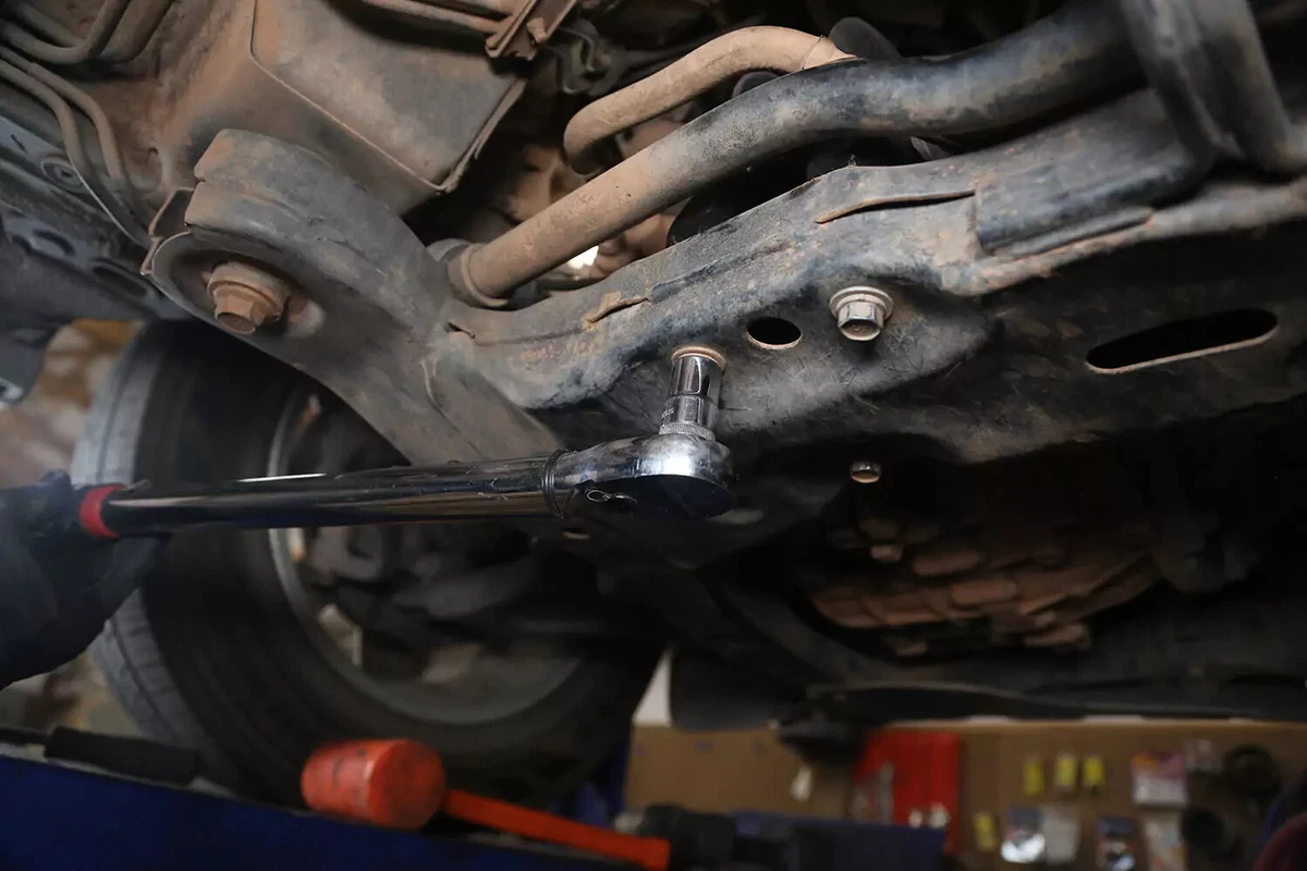 Затегните завртње за причвршћивање шасије и унакрсни вијак. Користите момент кључ да затегните завртње према фабричким спецификацијама.