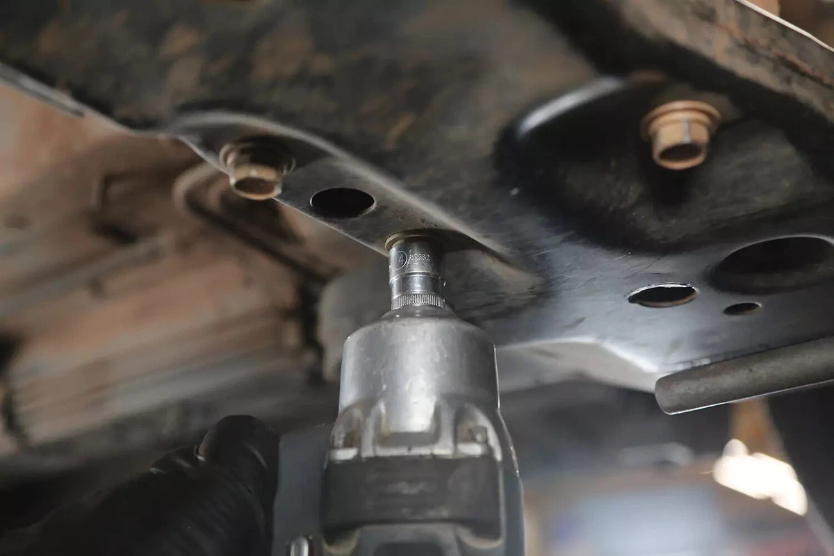 За наше демо возило, носач има три завртња на подраму и један вијак на мењачу. Још четири вијка причвршћују носач за монтажу мењача на мењач. На већини возила не морају се уклањати.