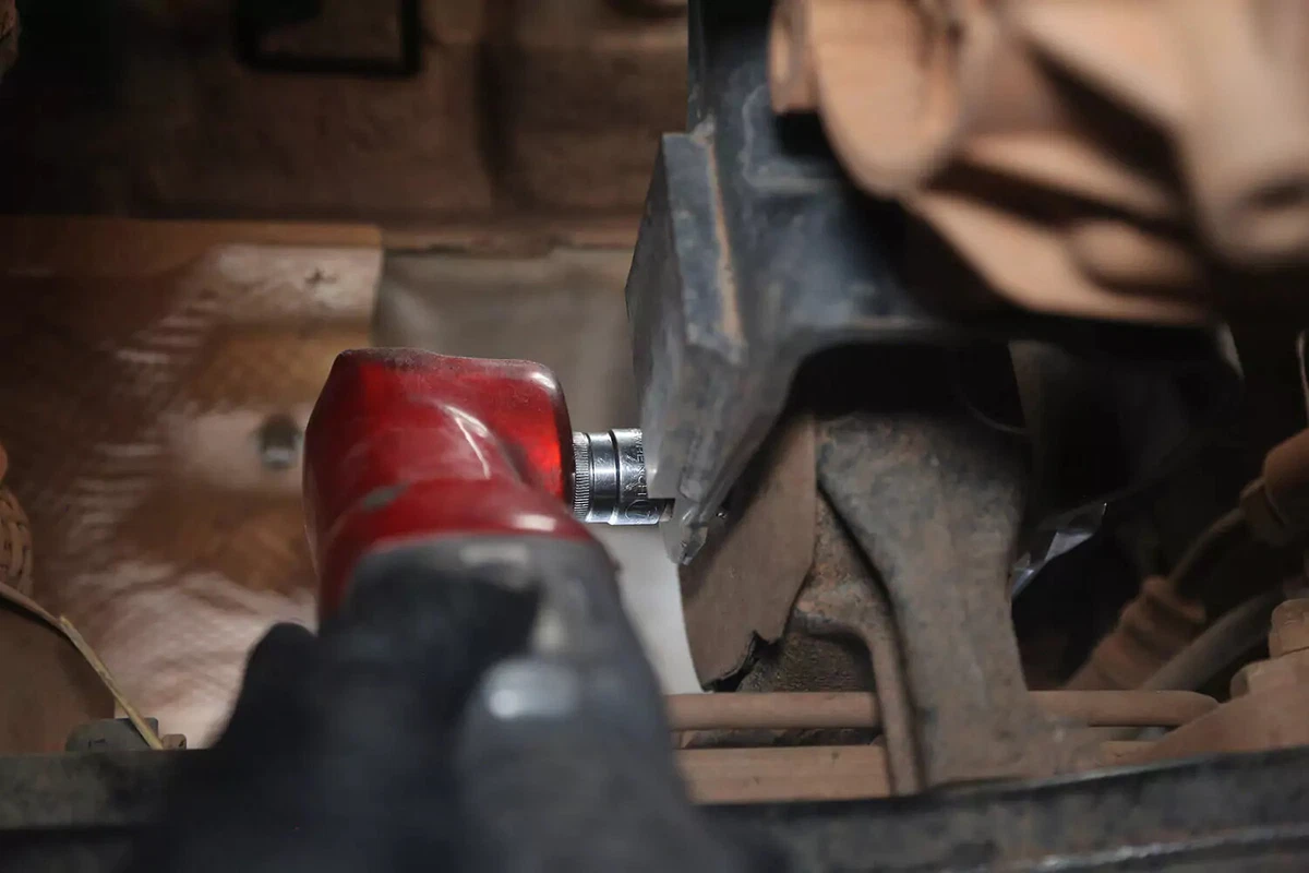 Наше демо возило има укрштени вијак који се уклања помоћу кључа са једне стране и утичнице са друге стране. Ово може бити тешко уклонити у уским просторијама. Користите полугу за разбијање, ударни кључ или полугу за варање да бисте добили потребну полугу.
